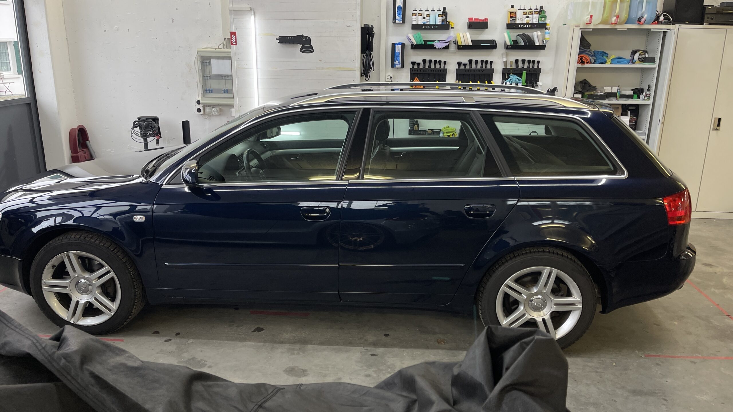 Heute haben wir einen blauen Audi A4 Avant mit unserer Mini Stage Aufbereitung auf Vordermann gebracht – die ideale Lösung, um Ihr Fahrzeug verkaufsfertig zu machen!